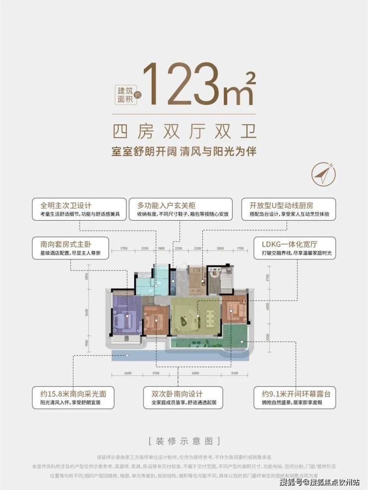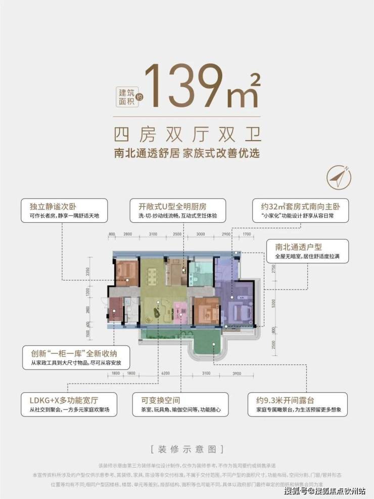 约32㎡南向套房主卧,搭配南向约3.9米大开间,“小家化”尺度与功能设计,从居住舒适度到功能性保障主人的从容起居;大四房的空间配置,可灵活满足三口之家、二孩家庭三代同堂等不同家庭结构和周期需求,真正达成“一步到位”的改善生活方式。
