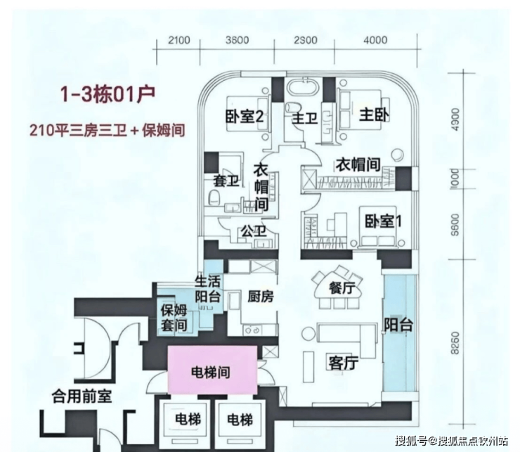 面积段相比之前有所调整,但变化不大,面积为210-217-305-370-510㎡大平层,以下为吹风户型,具体以开发商公布为准。