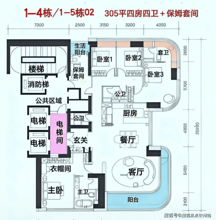 305㎡四房:均衡之选,适合多人口家庭,3梯2户设计保障了出行便捷性