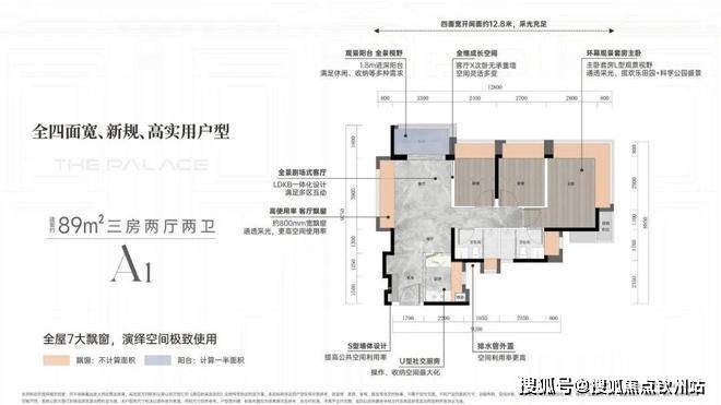 项目首批推出89-112㎡户型,采用四面宽+L型主卧观景飘窗设计,引“IMAX级景观”入户,其中89㎡三房可以对标100㎡的尺度感,112㎡对标125㎡的尺度感,空间利用率极高。更通过减少剪力墙实现空间灵活变换,满足二人世界、育儿、长辈同住等全生命周期需求。