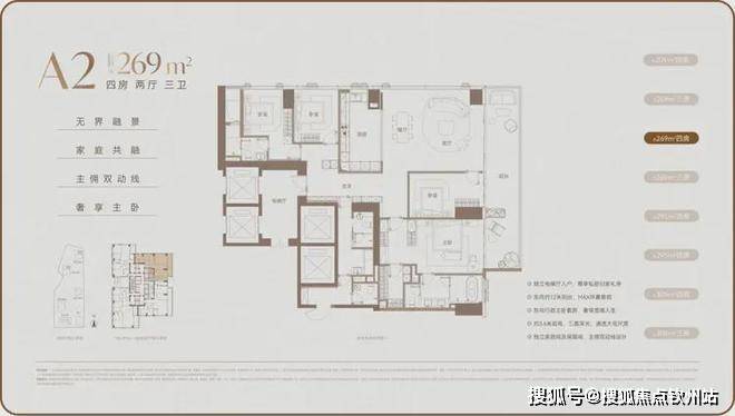 住宅面积约209-269-294-304平,高区约370-375-403平,超高区约500平-700平-1050平