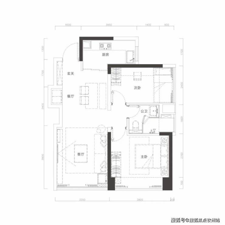 人性科學動靜分區,休息待客互不打擾;約3.8m面寬主臥,主次臥帶飄窗。