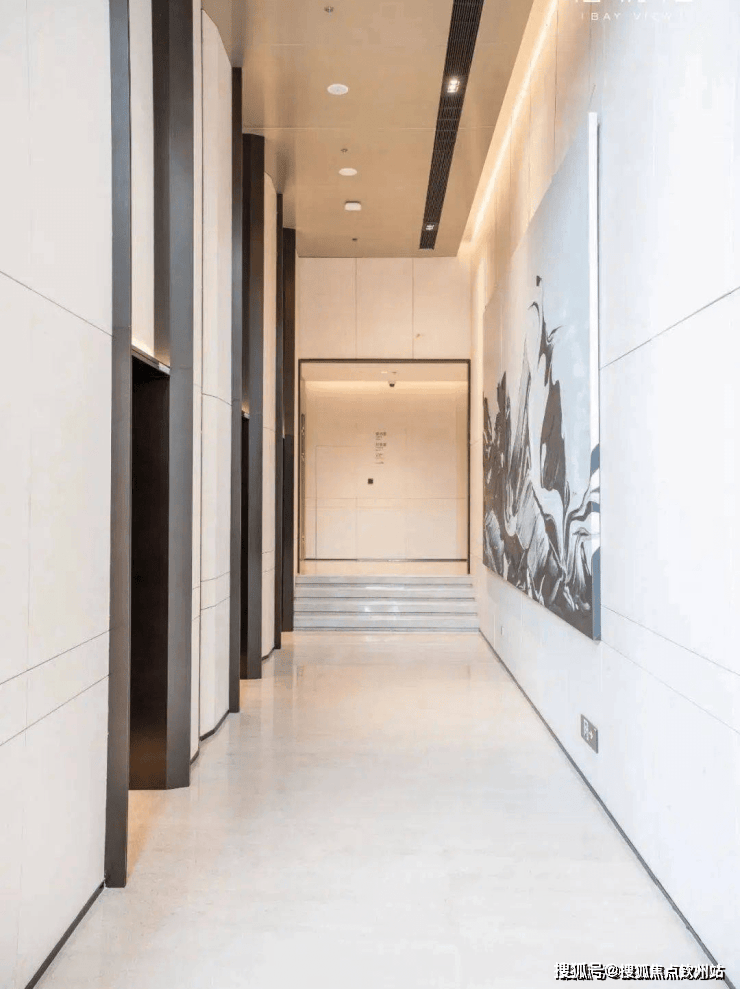 首层大堂电梯厅在空间设计上,运用竖向设计手法,并运用金属与石材相结合的方式,提升空间感的同时,又体现空间的细节精美之处。