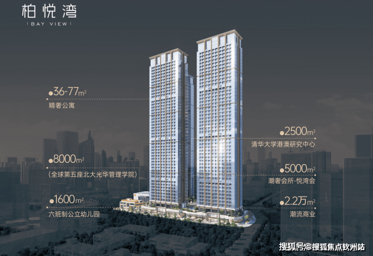 项目总建筑面积37万平,是集公寓、办公、幼儿园、约2.2万平商业、约5000平精英会所、约8000平北大光华管理学院、约2500平清华大学港澳研究中心等多元规划于一体的超级综合体。