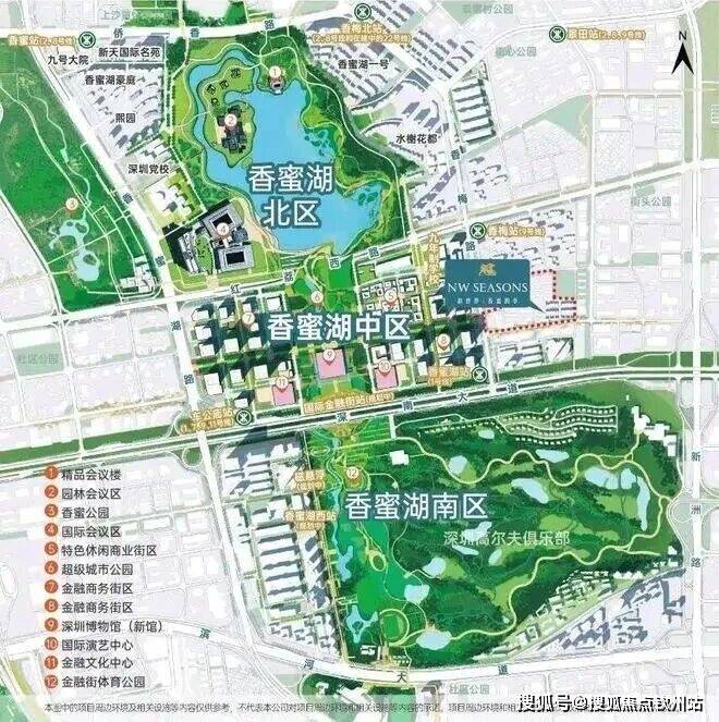 项目一南一北分布着两大地铁站:9号线香梅站、1号线香蜜湖站,香蜜湖、香蜜公园、特区报社等环伺其间,还有大片旧改。