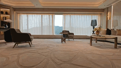 环视室内,超50㎡的LDKB一体化的大方厅,可以媲美市场上200㎡大平层尺度,约21.9米的全屋观景面,从客餐厅延伸至卧室乃至更多场景,形成连贯、延绵的无界视野。目之所及,昂贵的园、城、山环幕叠景皆是你家窗口的日常,何等惬意。