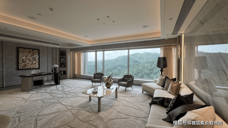 一推门,穿梭在被全面屏包裹住的会客厅,尊享凤凰山无遮挡的独家视野,还有什么设计能比这更好的安放你的情绪呢。
