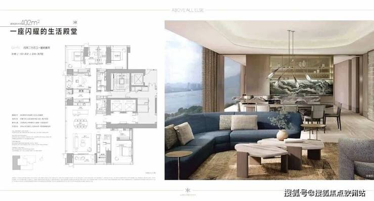 402㎡的豪华户型则是单端头三面采光,南向观深圳湾海景,多套间设计保障了家庭成员的私密空间,主仆双动线合理,LDK横厅既适合家庭生活,又能满足商务会客需求。