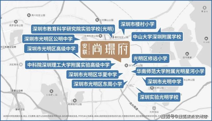 为满足未来科学城高端人才子女的教育需求,项目所在的光明中芯区教育资源充足,项目紧邻中科附高,区域内拥有22所学校汇聚,不断强化未来教育;