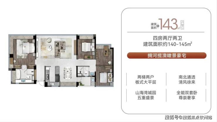 143㎡四房:总价约715万元/套,单价约5.07万元/㎡;