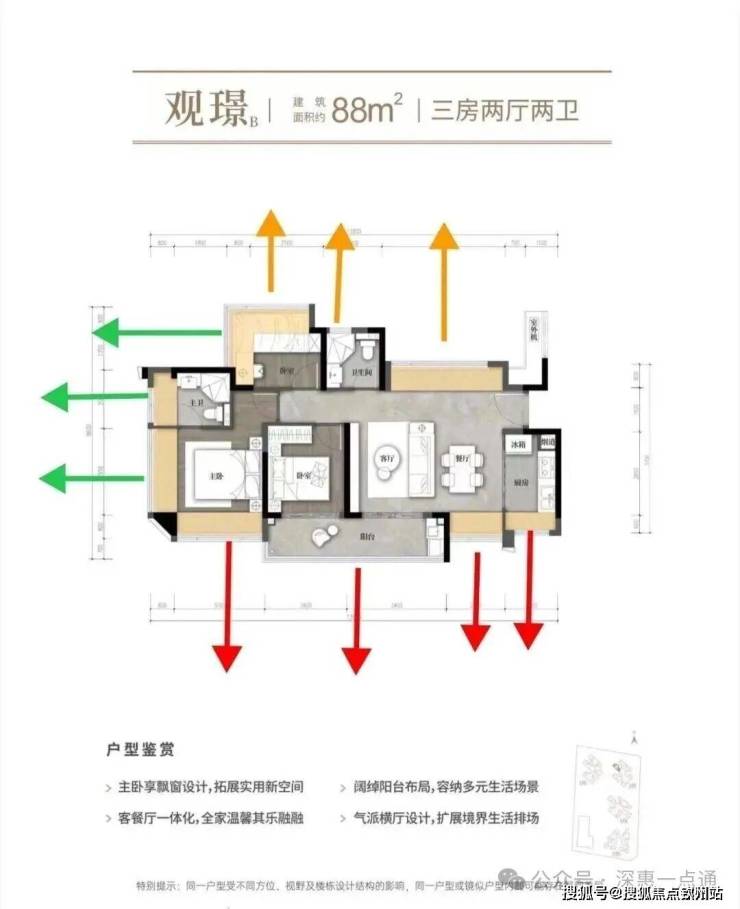 再来说一下88㎡户型情况,88㎡分为02的横厅,以及0506的竖厅两个户型