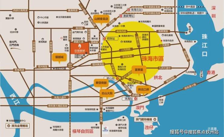 必选1 地段:黄金地段 湾区新景粤港澳大湾区黄金三角地段,珠海主城云峰路旁,享深圳、珠海双特区红利,周边全优生活配套,5分钟直达珠海主城区,30分钟澳门生活圈,40分钟香港经济圈,70分钟深圳经济圈,占据湾区顶尖人才经济发展红利,共享湾区新景。