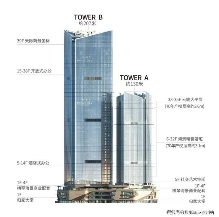 ·包含天际住宅、云端会客厅、甲级写字楼及商业等多元业态的地标综合体