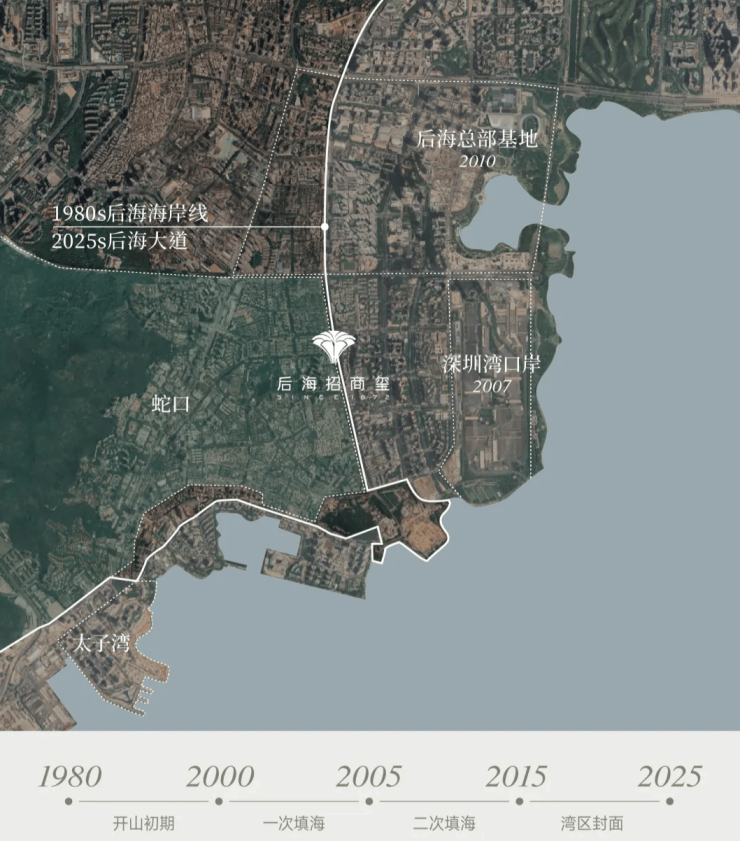 1979年之前,后海还是一片填海滩涂作为彼时的海岸线,后海大道是深圳尽头90年代,深圳进入大规模填海造陆后海,从汪洋中走来,从这里走向世界。