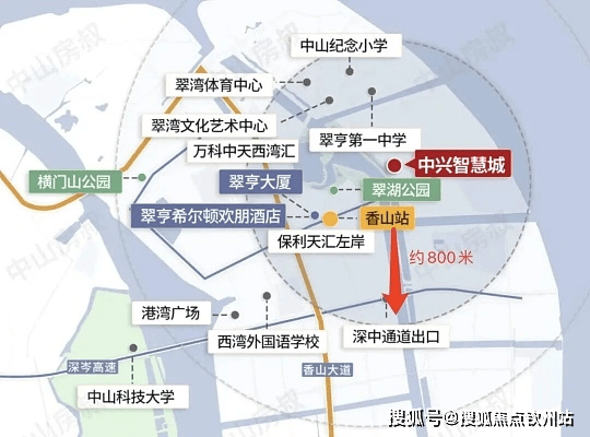 位置:中山市翠亨新区马鞍岛未来大道 22 号(翠湖公园板块),距深中通道翠亨东出入口约 800 米,步行约 400 米可达建设中的南中城际香山站,30 分钟直达深圳前海,40 分钟达广州珠江新城。