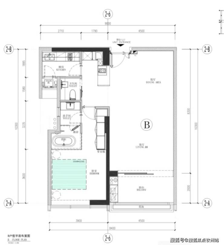 B户型:105平方米,一房一厅
