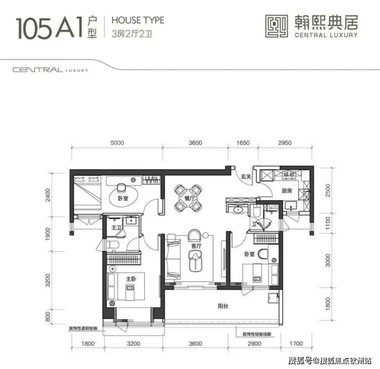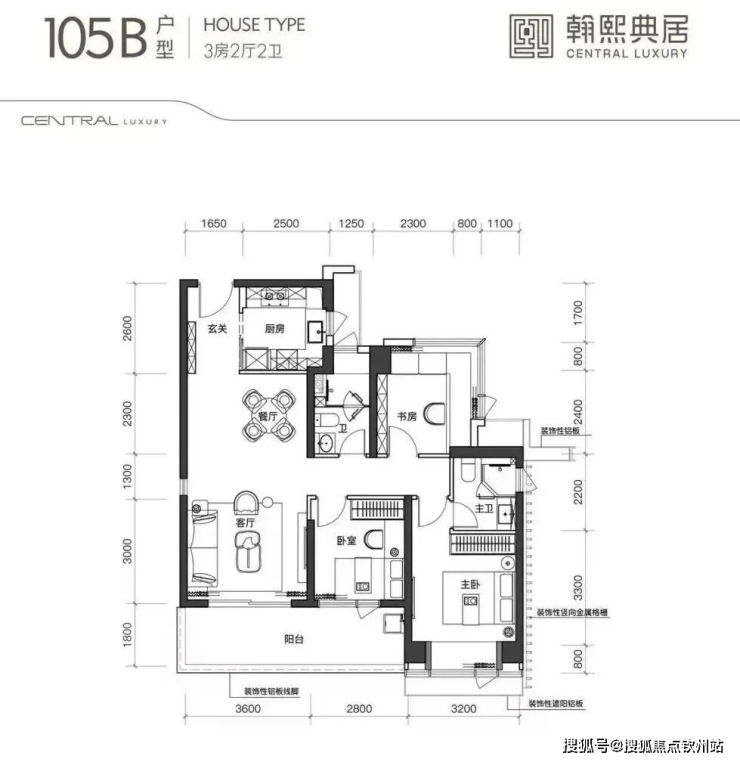 建面约105㎡的3房2厅2卫