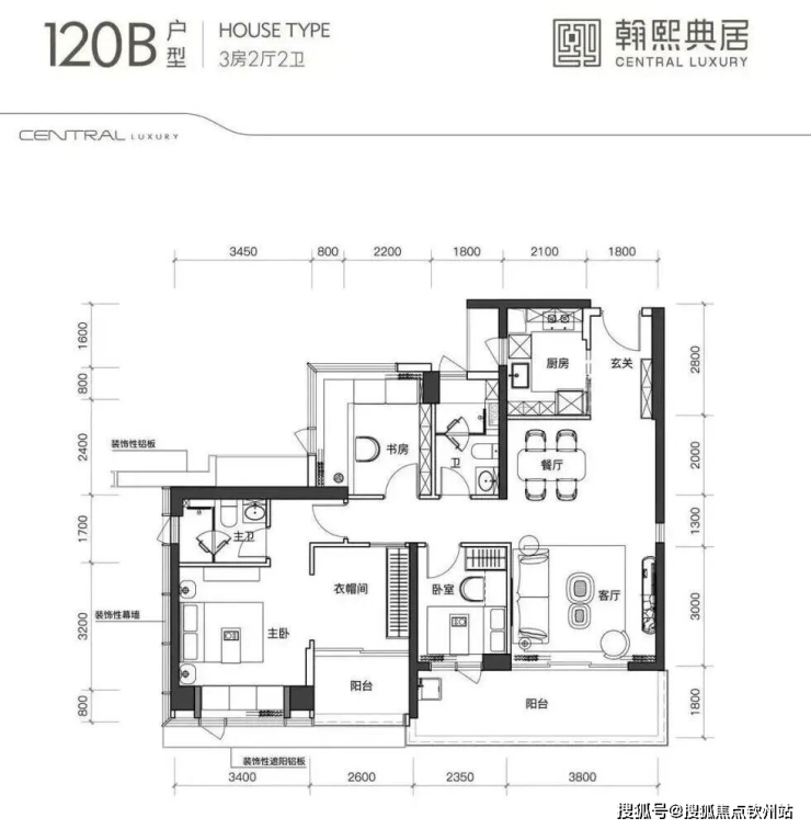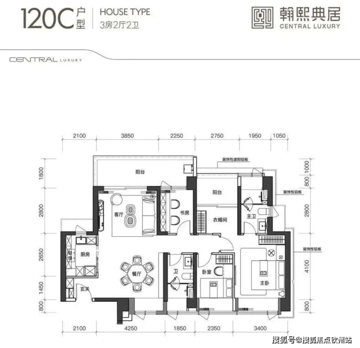 建面约120㎡的3+1房2厅2卫,