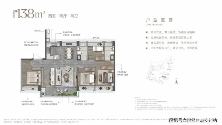 138平四房两卫:剩余房源为4栋1单元01的中高楼层,4栋2单元01和02,西南朝向