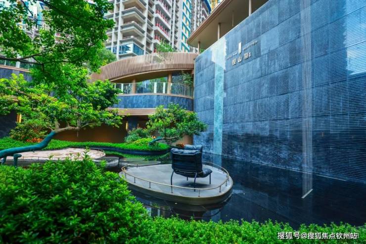 🔘约9m水庭院瀑布,前海惟此社区庭院瀑布