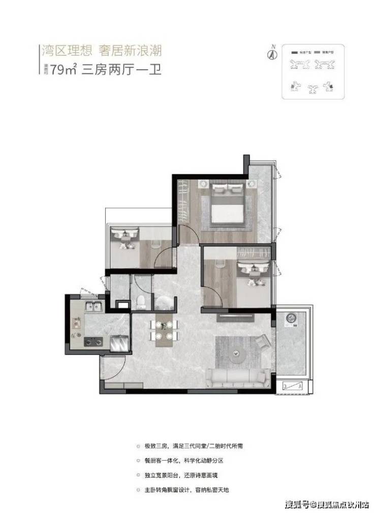 高得房率:来自深圳的爆款户型,79㎡3房1卫、89㎡3房2卫、105㎡4房2卫,全周期户型,90%以上超高得房率。
