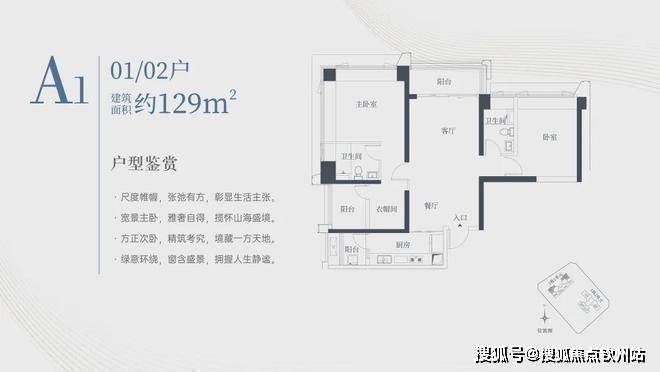1栋一单元A1、A2户型:面积约为129㎡