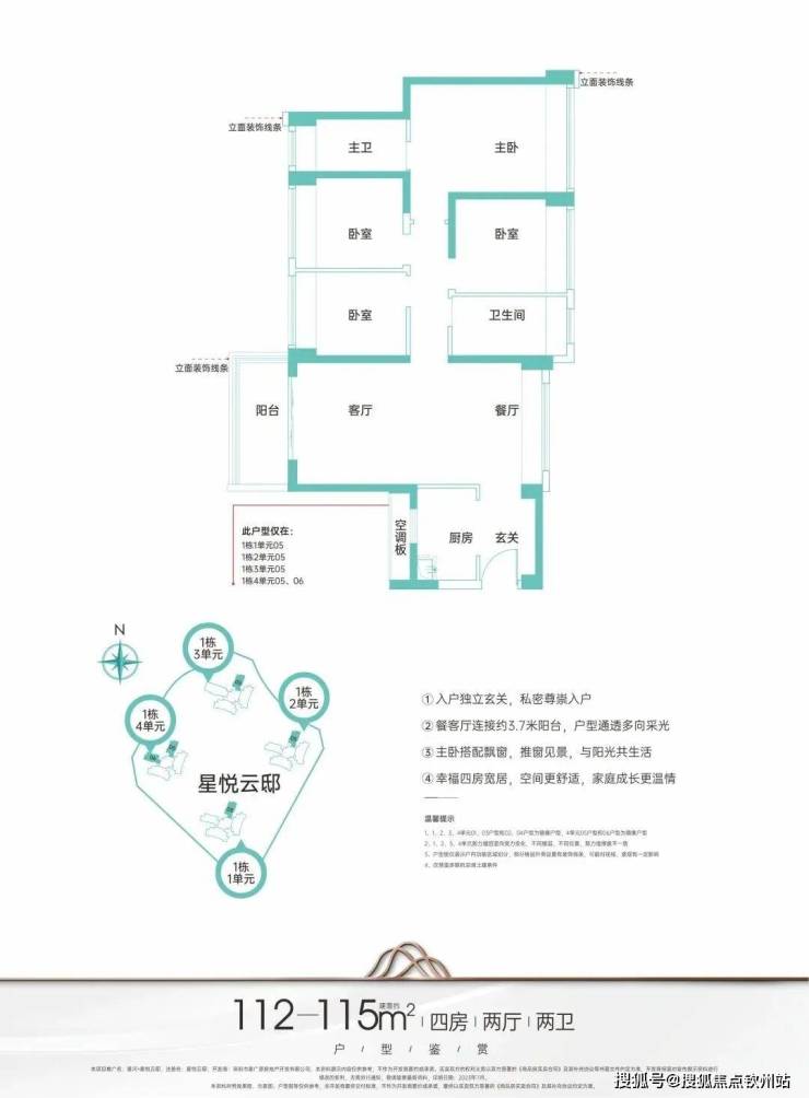 主力户型建面约95-124㎡臻品三至四房,