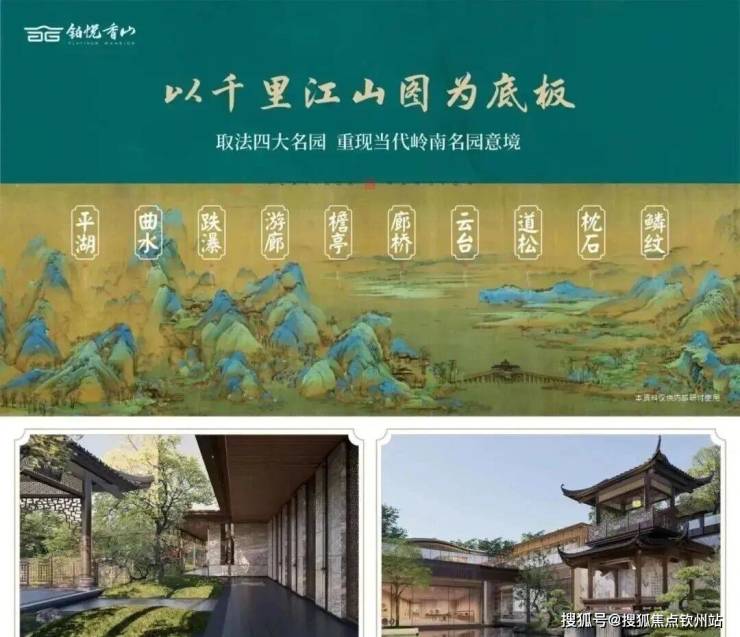 园林设计以《千里江山图》为灵感蓝本,巧妙融合岭南四大名园精髓,复刻佛山梁园"半边亭"。通过"漫卷云章"、"金水澜庭"、"琉璃水院"三进式景观轴线,呈现移步换景的东方美学。