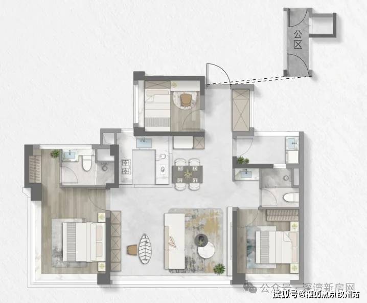 由于高增送率,建面约99m²也能做到4房空间,且拥有独立玄关位。建面约110m²做到南北通、独立入户花园、独立玄关、4+1房空间、全屋带采光面,使用率拉爆!