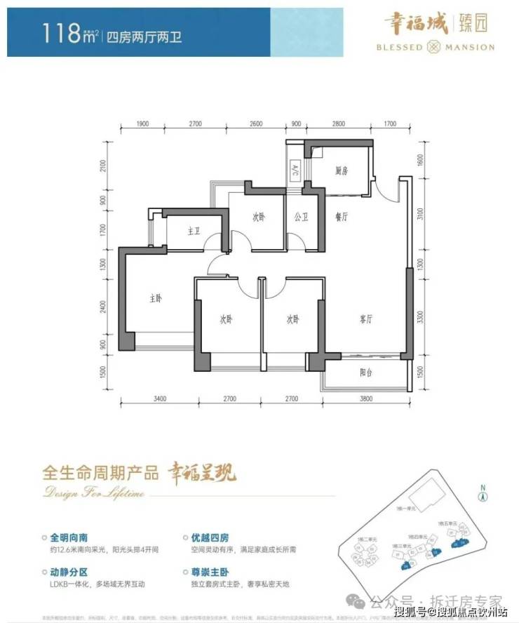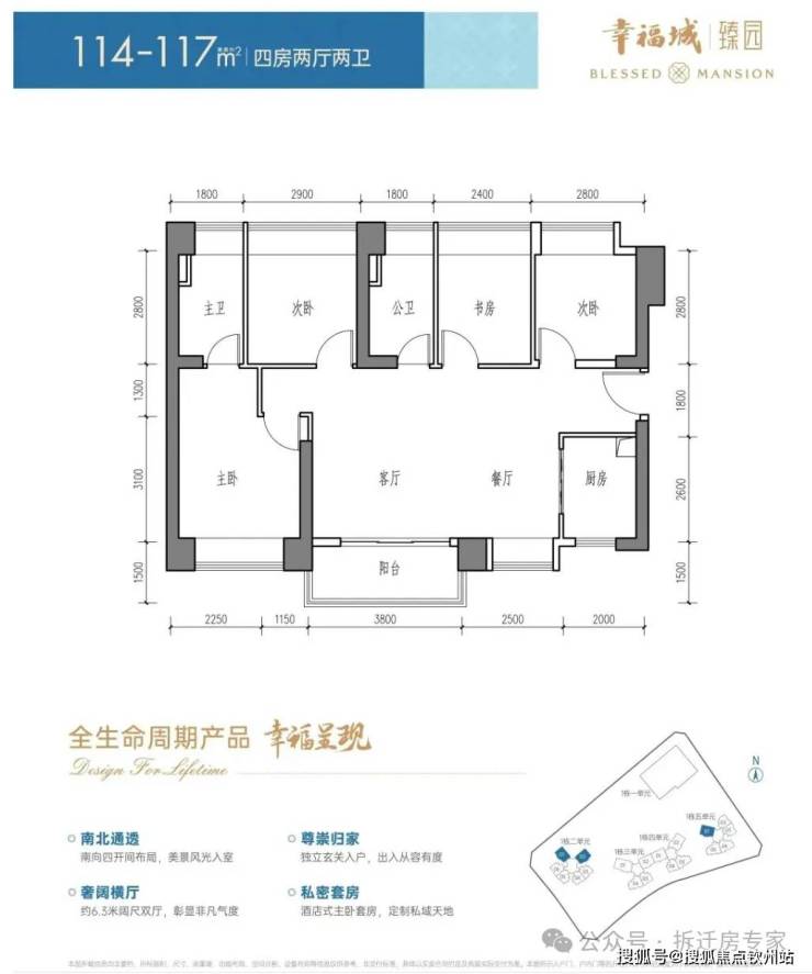 114-117㎡:4房2卫横厅南北通透,客餐厅6.3米开间,全屋8个飘窗,主卧15.35㎡。