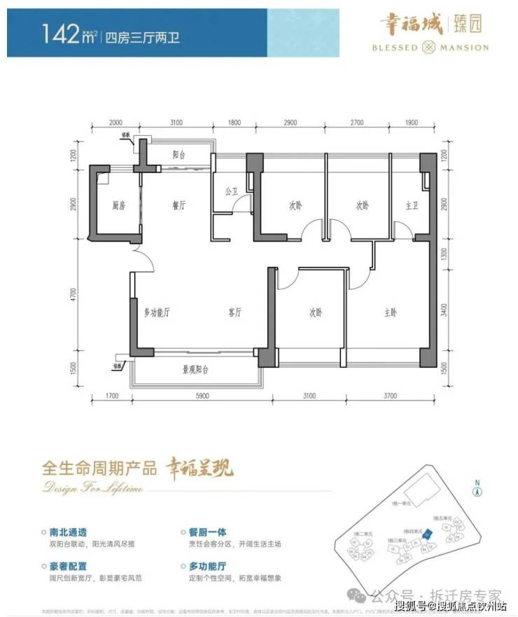 142-163㎡:4房3厅方厅设计,南北对流双阳台,163㎡户型含空中平墅概念。