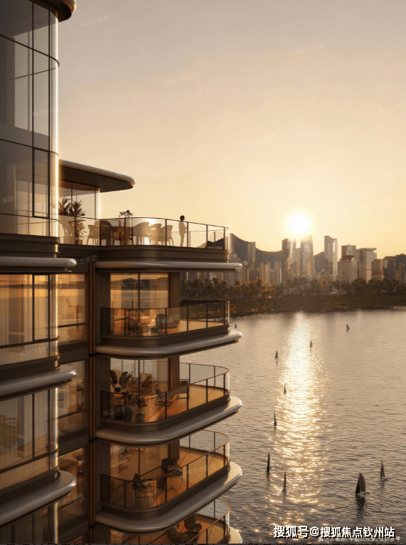 在建筑立面表达上,以“时代风帆”为创作灵感,竖向金属线条搭配大面积玻璃幕墙,在光影流转间与前海湾的潮汐同频共振,既彰显了深圳“勇立潮头”的城市精神,也成为前海湾城市天际线的点睛之笔;楼栋错落排布,保障住户东南向海景视野通畅,让建筑贴合海岸肌理、融入城市界面,成为前海湾辨识度突出的天际线作品。