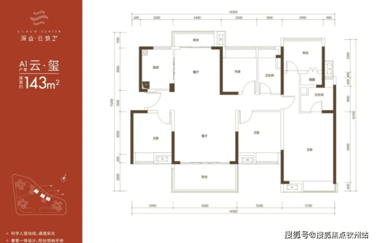 143㎡的4房2厅2卫,折后总价558-619万/套,单价3.91-4.36万/㎡。