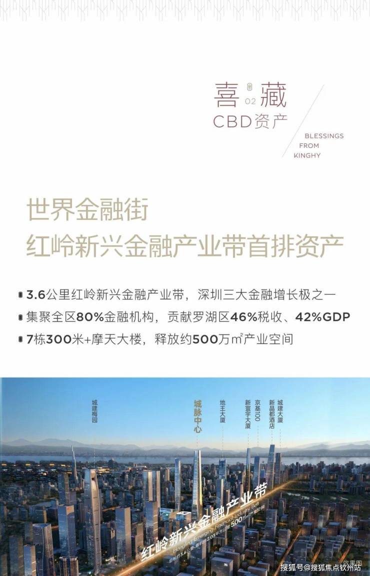 城市中轴 城市价值巅峰脉络所在 3.6公里金线,串联的不仅是地理中心坐标 更是资本潮汐的终极引力场 💠深圳黄金中轴💠 西承福田CBD金融权杖 东接罗湖中心资本基因 南瞰香港都会全球视野 城市发展正脉,集聚全球高端资源要素 💎世界级金融街💎 红岭新兴金融产业带 深圳金融增长极、湾区金融大动脉 以世界级金融街的澎湃心跳 注解全球塔尖资产的永恒定律 🏙️深圳唯此天际线🏙️ 3.6公里崛起7栋300米+摩天大楼 全球罕见天际线集群,密度对标纽约华尔街 城脉中心璟喜 每一扇窗都是天际资本版图的观星台 显赫价值,自是不争的瞩望 [ 惟有地标 值得世界见证 ]