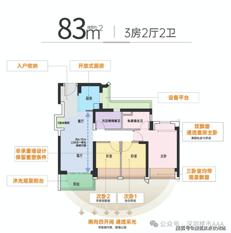 1.全部东南朝向,一线观澜河、碧道景观、观澜古墟景观