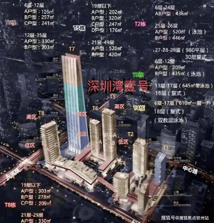 总建筑面积47.5万㎡,是集寰球商务、高端公寓、奢华酒店、高端商业于一体的高端城市综合体,特别重要的是还带深圳湾中小学学位。