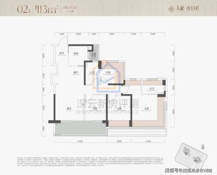 项目占地约1.37万㎡,建面约5.89万㎡,规定容积率2.8,绿化率30%,由2栋总高30层不超过100米建筑组成,单层层高3.15米,2梯5户,推售面积113-115㎡四房两卫和139㎡五房两卫,共290户,配380个车位,车位比1:1.31。