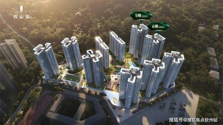 观山海家园项目规划由12座住宅楼+裙房商业+花园景观廊架主体组成,1栋1/2/3单元23-24层,2梯4户;2栋1/2/3单元19-24层,2梯5户,3栋1/2单元和4栋1/2单元17层,2梯2户;5/6栋25层,2梯4户;