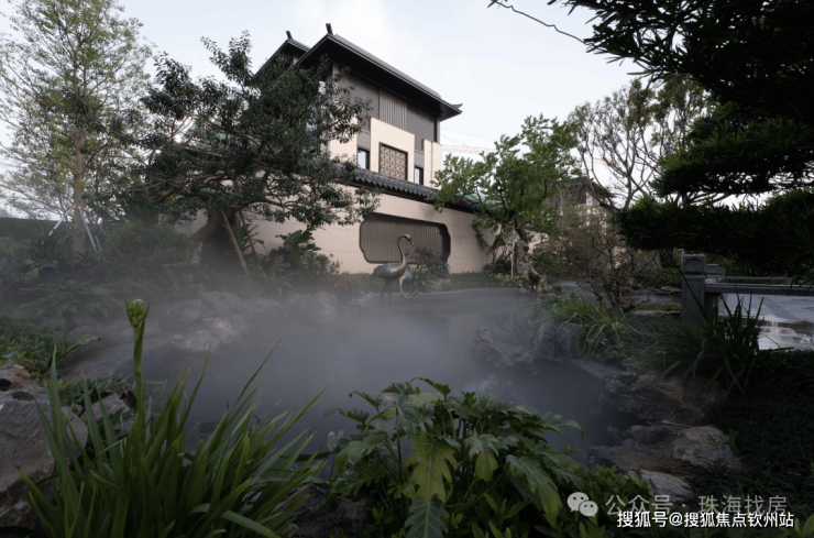 园林选用大树、特选老桩等在入园提升价值感,厚重的额绿荫结合热带。风情打造岭南特色诗意情境,凸显典藏级府邸厚重、尊贵的底蕴。