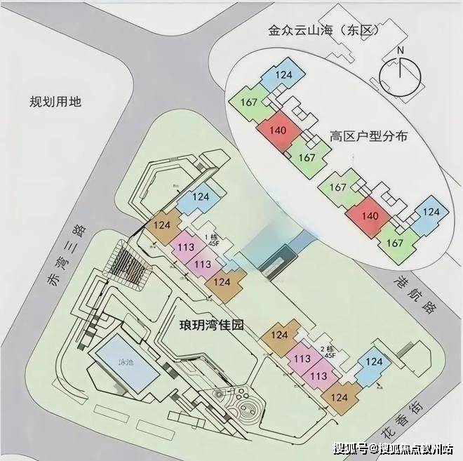 琅玥湾佳园为纯商品房社区,380套房源,一共5种户型,分别为113㎡3房2卫,124-139㎡4房2卫,167㎡5+1房3卫,其中124㎡分横厅和竖厅户型,113㎡位于中低区,139、167㎡全部位于高区。