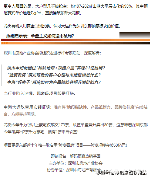项目首开即创下惊艳战绩:首推239套房源,当日狂揽21亿元,强势登顶深圳东部开盘销冠!