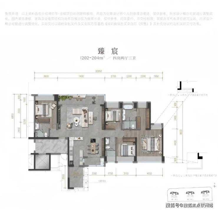 (2)约202-204㎡四房两厅三卫:折后1030万起;