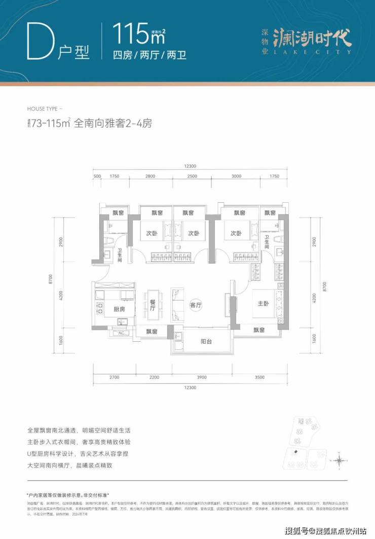 产品面积段:建面约73-115㎡全南宽奢2-4房