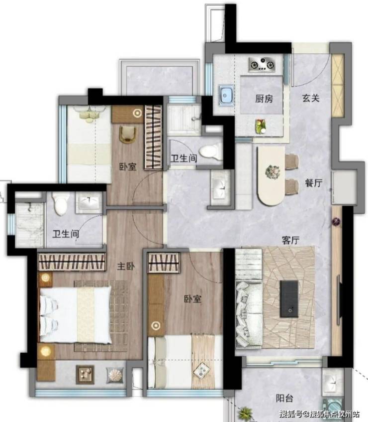 86㎡三房两卫:总价286-355万。经典竖厅格局,客厅3.2米开间,动静分区,三开间朝南,U型厨房,公卫三段式分离,还送一个设备平台。这个户型改善属性更强,两卫设计也更方便。西南或东南朝向。