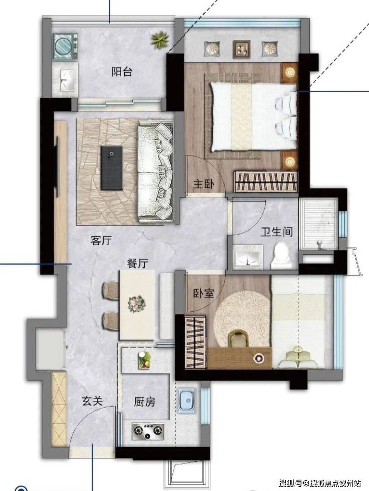 63㎡两房一卫:这是最小面积段,总价212-235万。竖厅设计,客厅3米开间,有入户玄关八宝库,LDKB一体化,U型厨房,卫生间干湿分离。适合刚需上车或者投资出租。这个户型西北朝向,虽然朝向一般,但总价低啊,首付32万起就能上车,还要什么自行车。