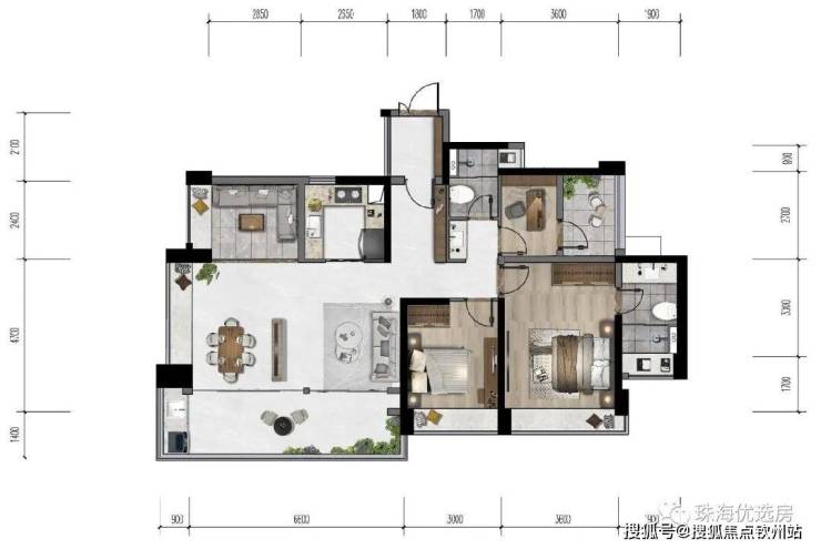 (3、5-7栋01户,非最终版本,各梯腿户型有所差异,以售楼部现场输出为准)