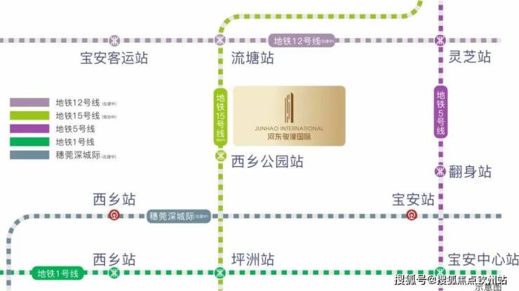 交通配套:河东骏濠国际紧邻15号线(规划中)西乡公园站,直线距离约200米,无需换乘,3站直达大铲湾“腾讯科技岛”、5站直达留仙洞总部基地、6站直达前海商务区、9站直达南山科技园,12站抵达后海总部基地,构建半小时通勤圈。直线距离12号线流塘站约700米,步行900米,接驳地铁1号线、5号线,4站通达南山。距离穗莞深城际(在建中)西乡站、宝安站约2.5公里。