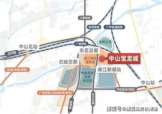 城轨:距中山站约 2.3km、中山北站约 3.2km,广珠城际、深茂铁路(建设中)途经。