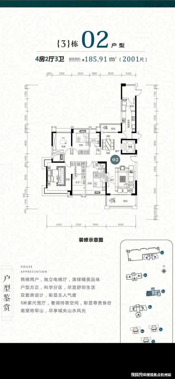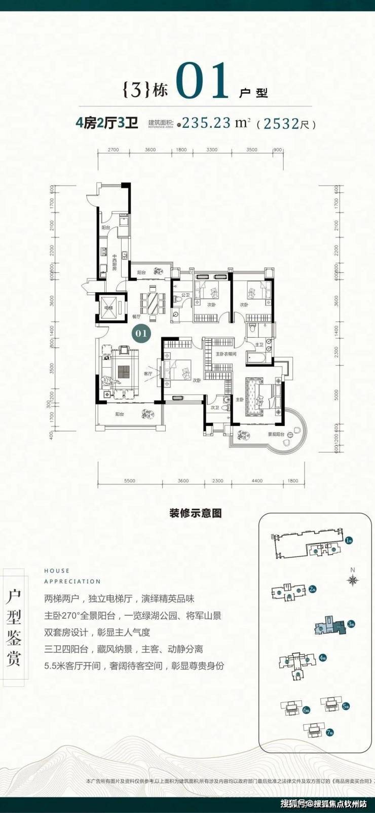 3栋户型鉴赏:建面:约185-235㎡四房两厅三卫
