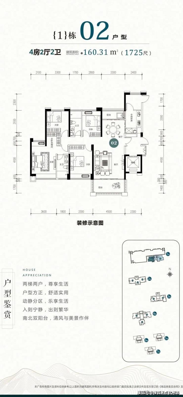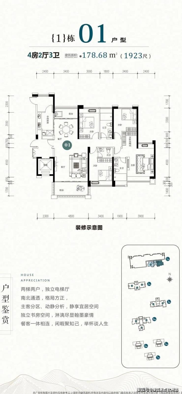 1栋户型鉴赏:建面:约160-178㎡四房两厅三卫